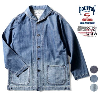 ミリタリーブランド"HOUSTON"のデニムカバーオール。WW2でも着用されており、歴史的背景からコレクタブルピースにもなっているU.S.NAVYのカバーオールです。 へちま襟とも呼ばれるショールカラーとライトな生地感が特徴的で、春先に着用するのに適しています。オリジナルU.S.コットンデニムやビンテージ調のソーオンボタンを採用し、当時の雰囲気をできるだけ再現。