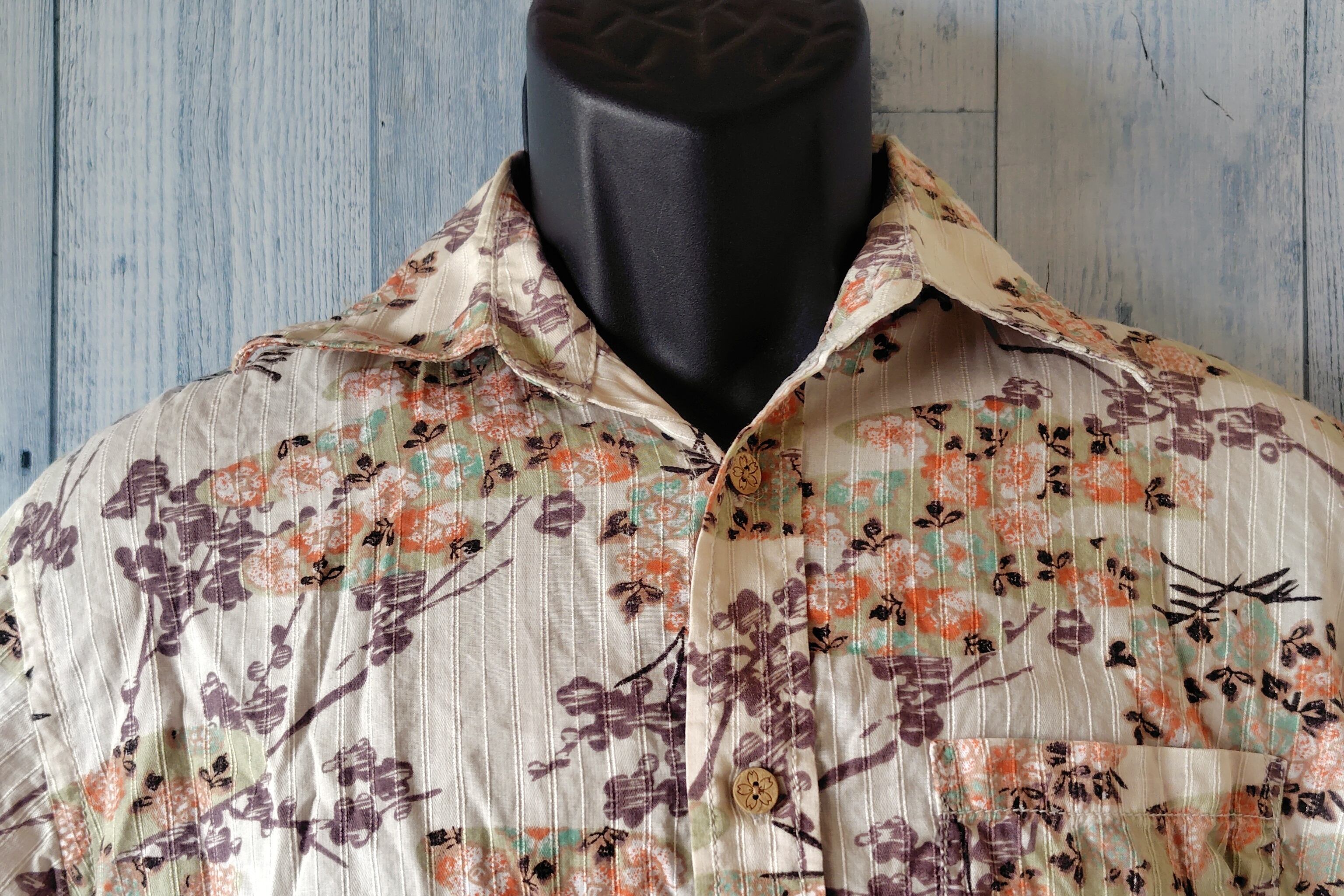 流行の和柄が魅力の古着、アロハシャツのご紹介です。サイズMで、カジュアルな日常使いはもちろん、ちょっとしたお出かけにもぴったりです。コットン素材を使用しているため、肌に優しく、軽やかさも兼ね備えています。これからの季節にも大活躍する一着です!