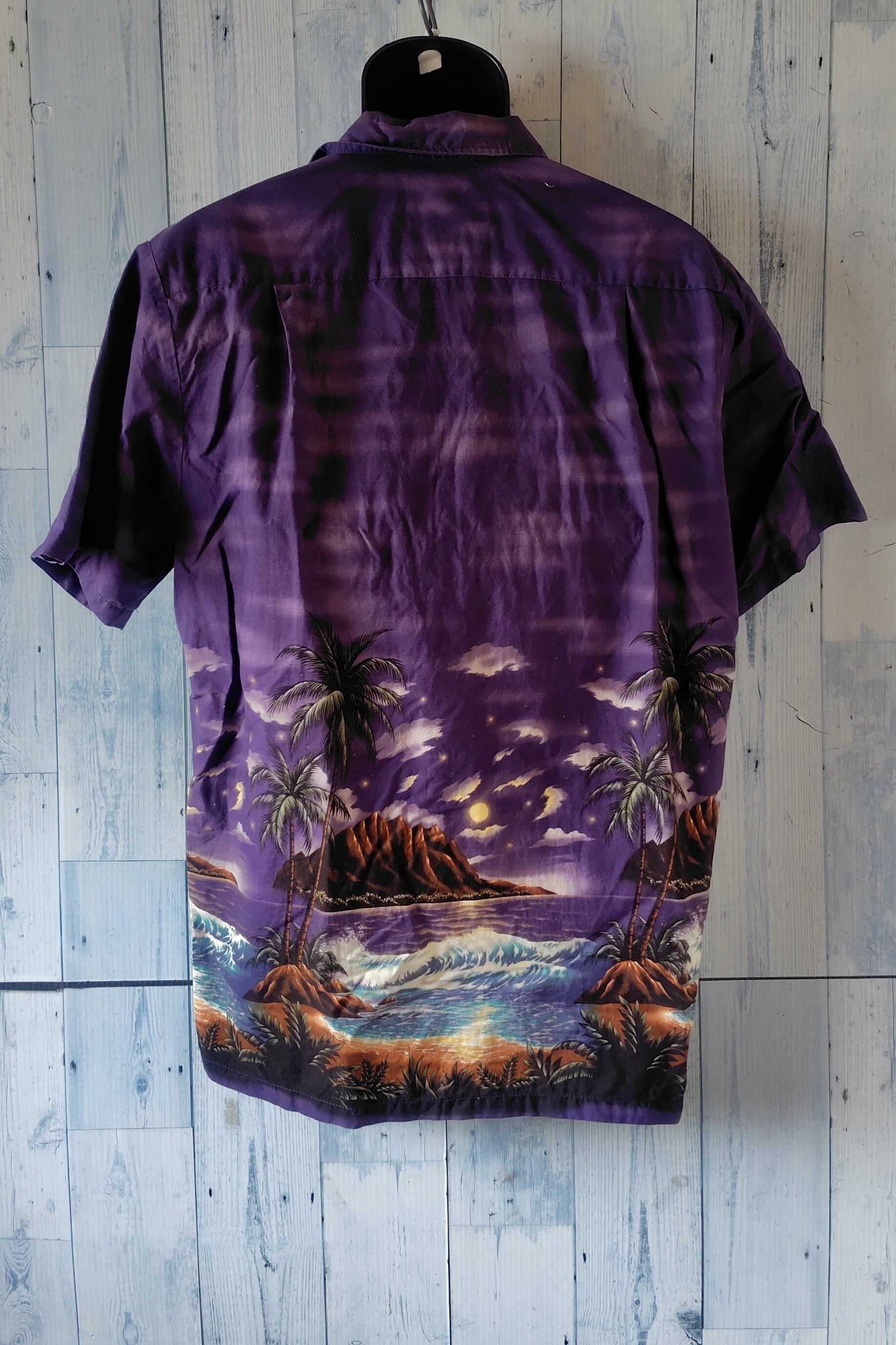 古着 アロハシャツ ホリゾンタル柄 サイズM コットン ハワイ製 半袖 RankB