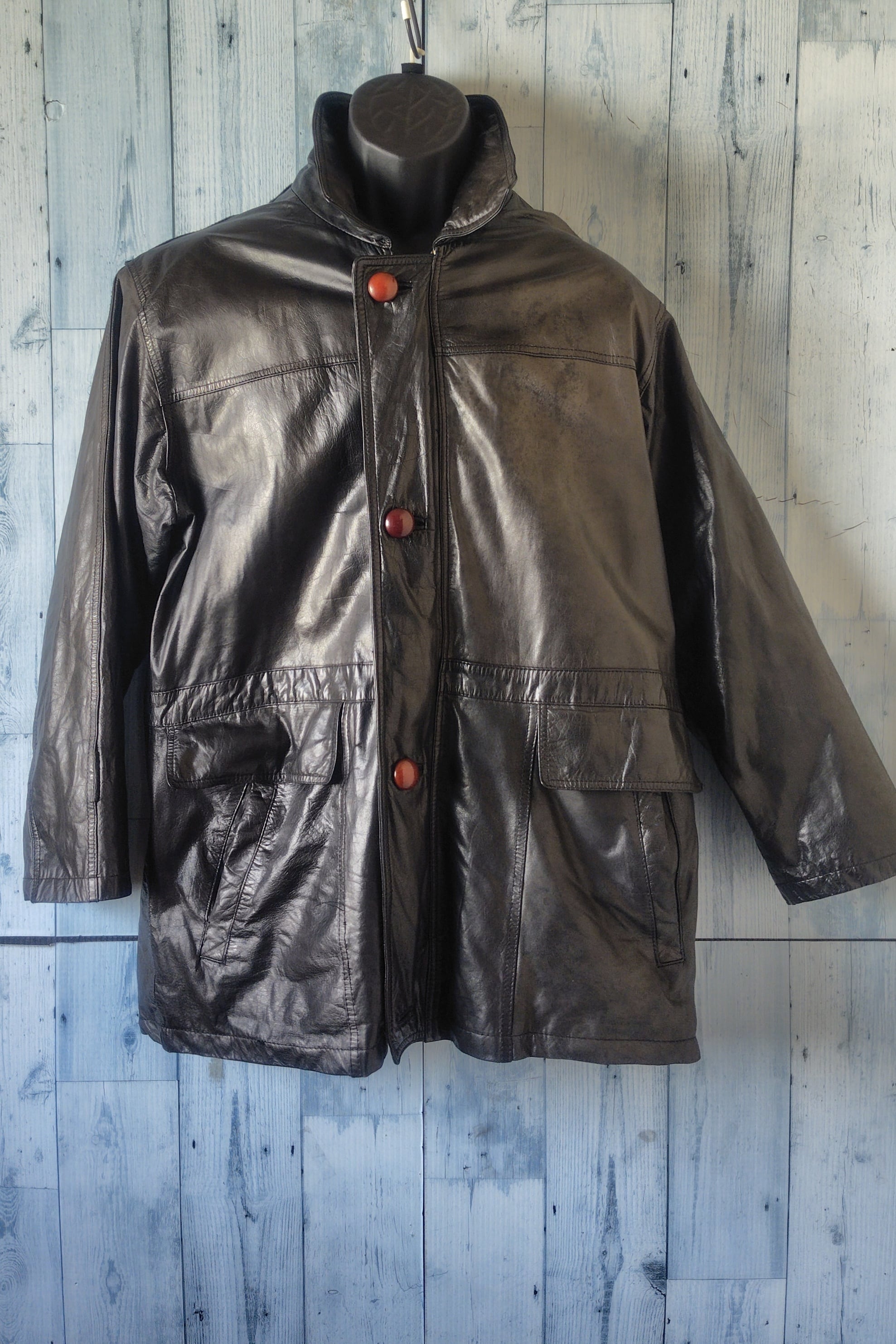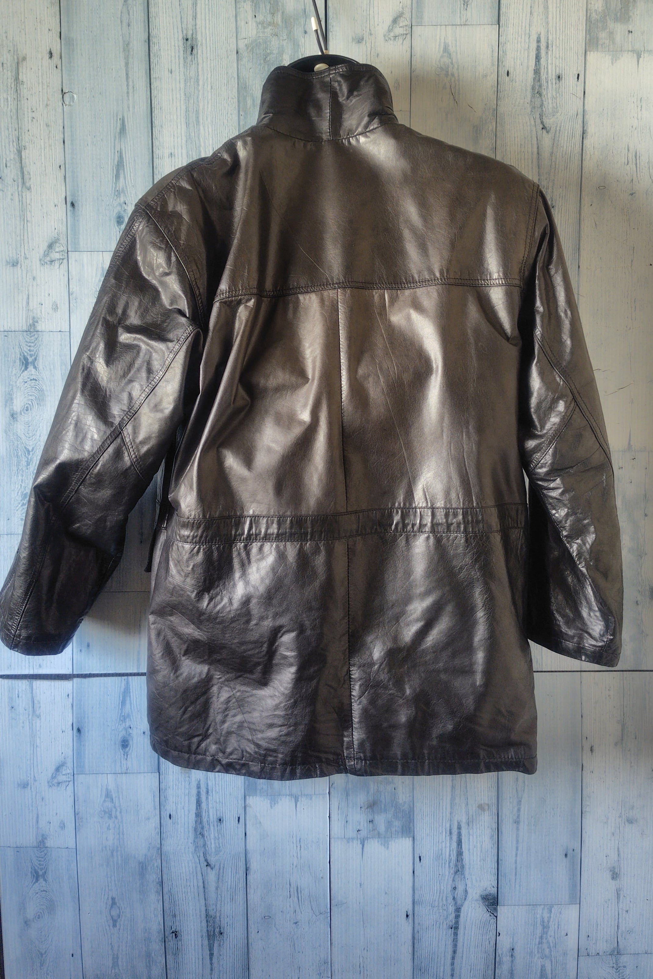 アメカジスタイルを存分に楽しめる一着、古着のVip 羊皮レザージャケット カーコートが登場です!その独自の風合いは、カジュアルコーディネートにぴったり。内側にはドローコードが施されており、スタイルを自由に調整可能です。肩幅は約48cm、身幅は約57cm、袖丈は約52cm、着丈は約74cmとなっており、快適なフィット感を提供します。