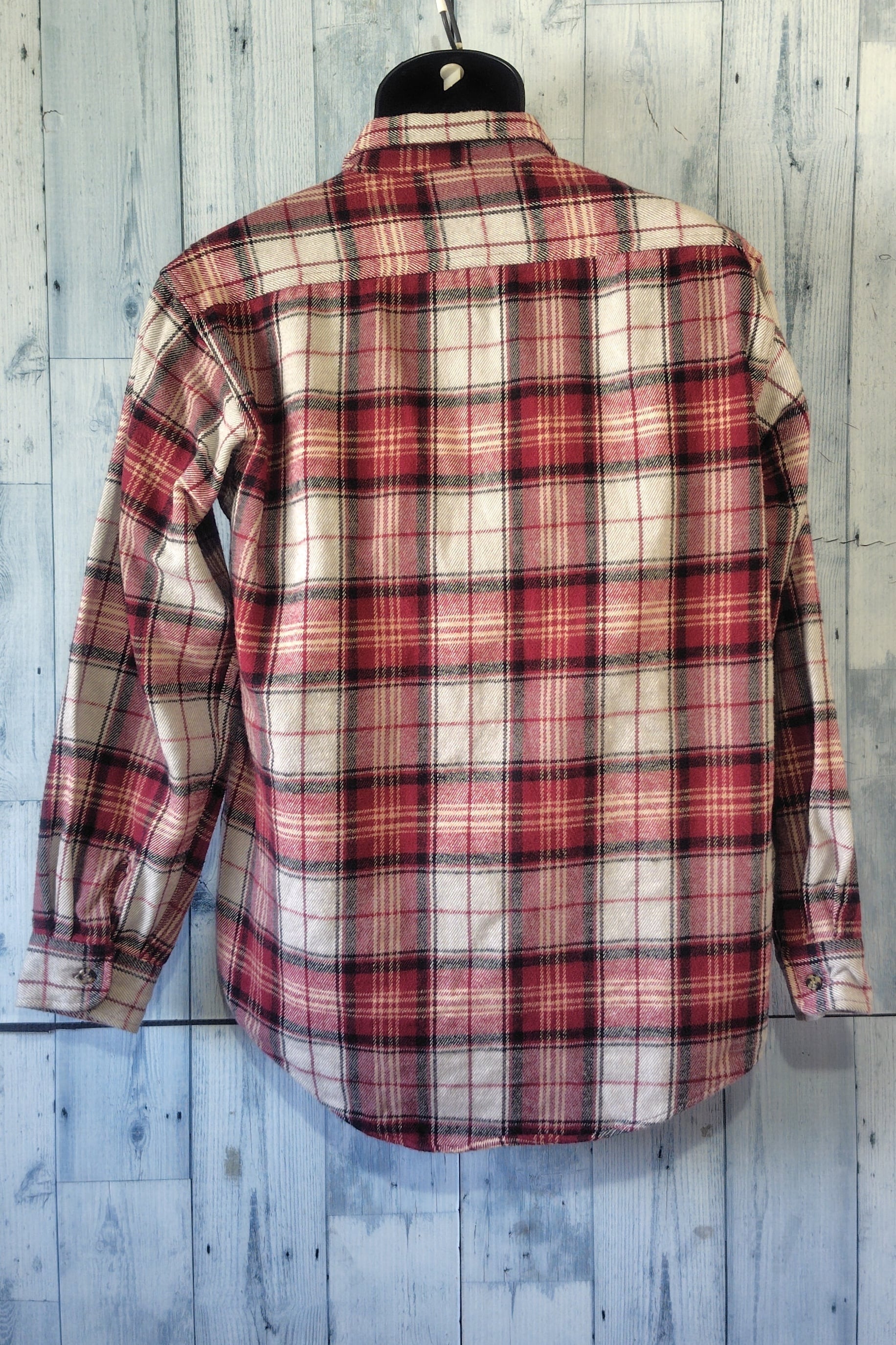 普段使いはもちろん、友人とのお出かけやアウトドアシーンでも大活躍!ボトムスを選ばず、様々なスタイルを楽しめます。古着特有の味わい深い風合いが、あなたの個性的なコーディネートに深みを与えてくれる一着です。主役にも脇役にもなれるこのシャツは、ワードローブに欠かせない存在となることでしょう!