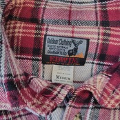 古着 EDWIN 長袖チェックシャツ ネルシャツ サイズM レッド系RankB