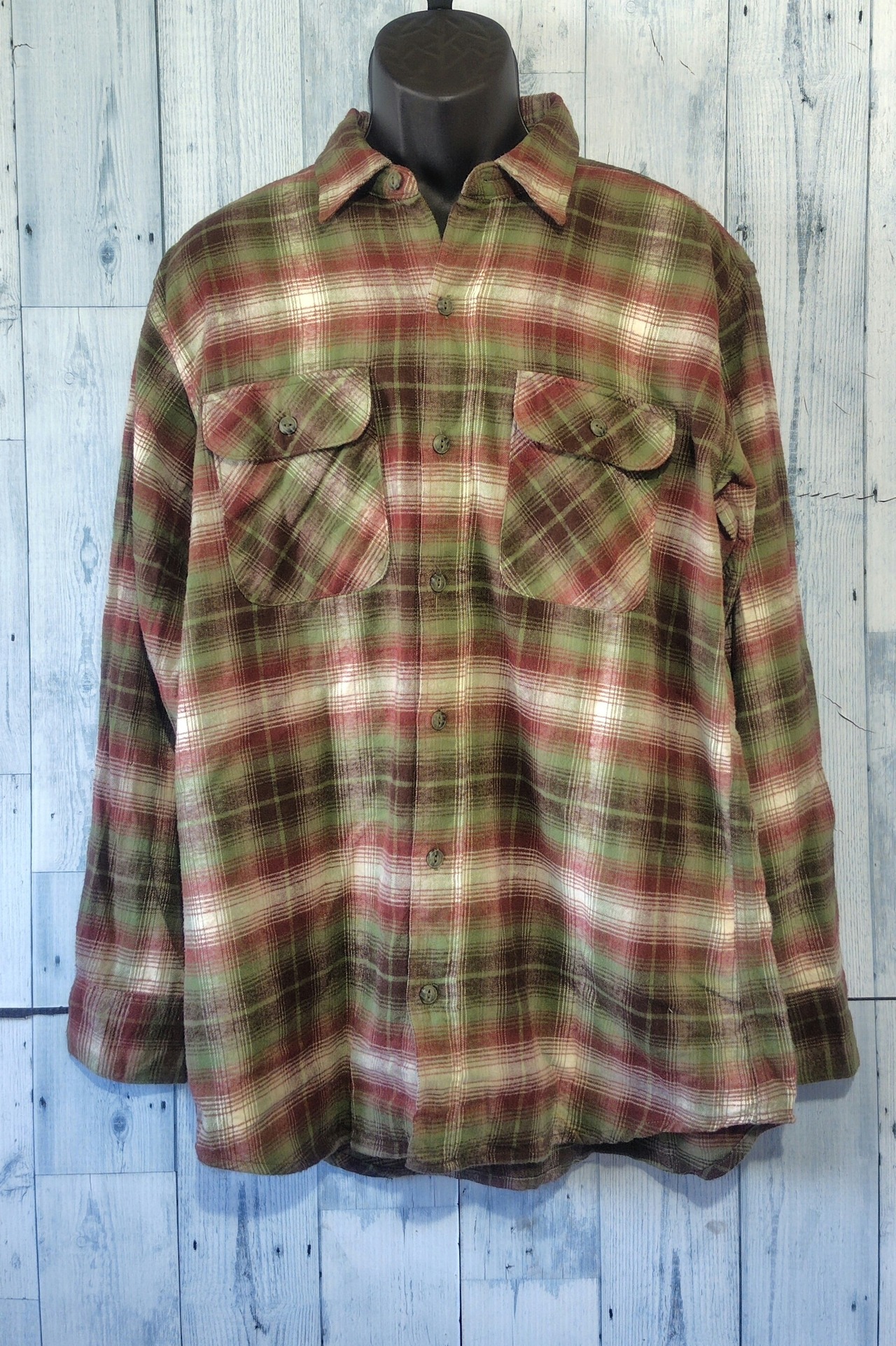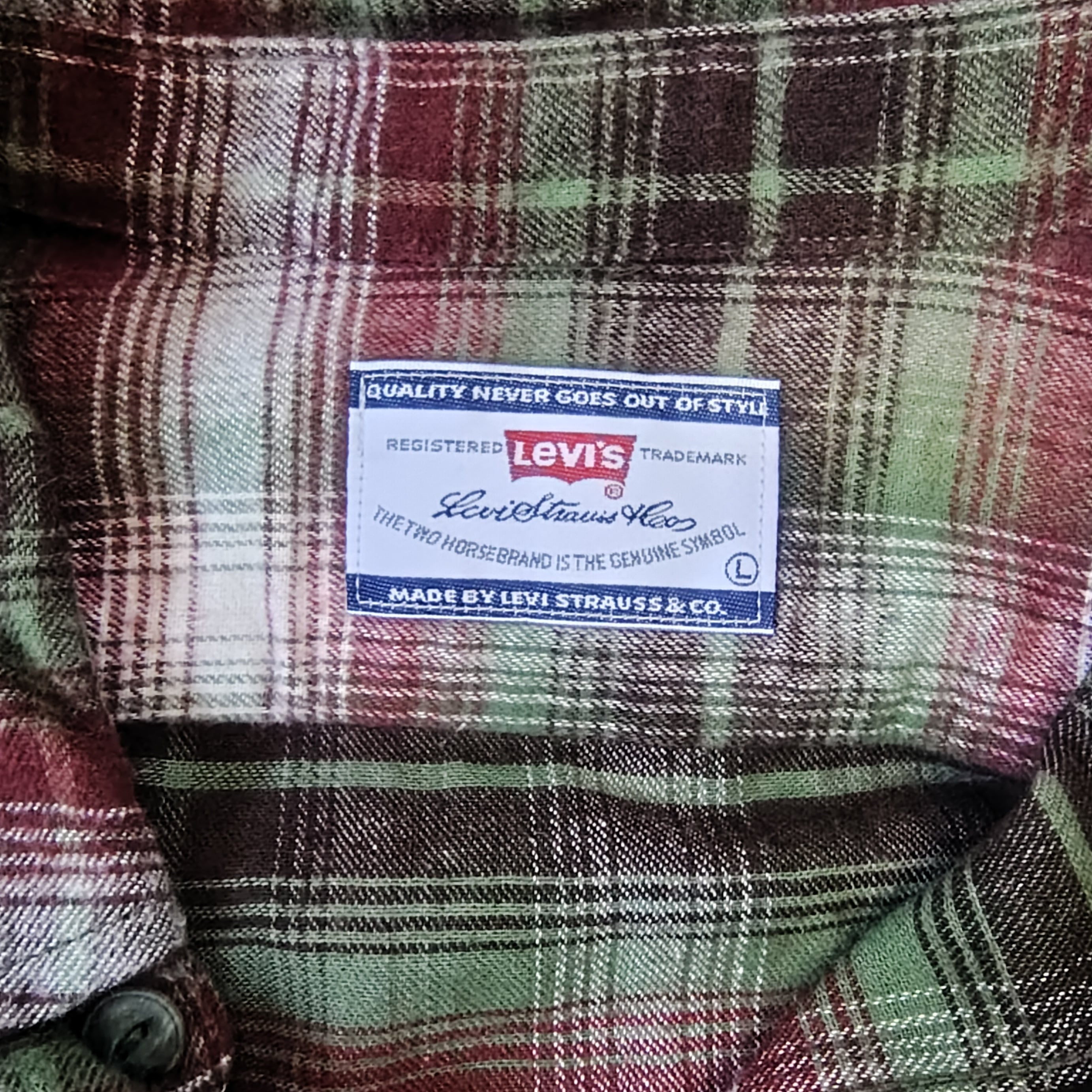 古着 LEVIS 長袖チェックシャツ ネルシャツ サイズL グリーン系 RankB