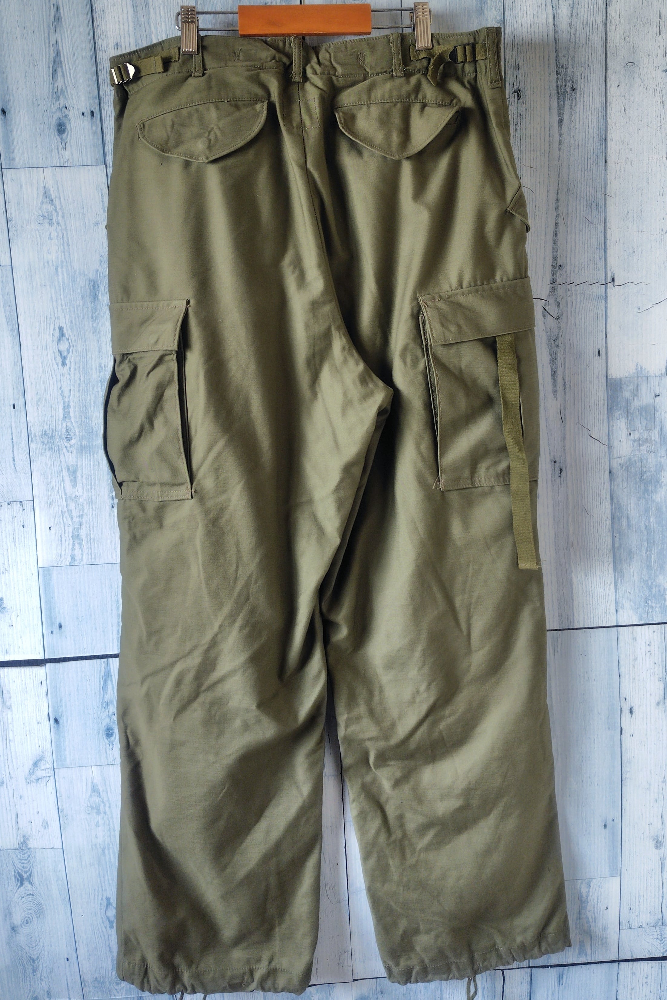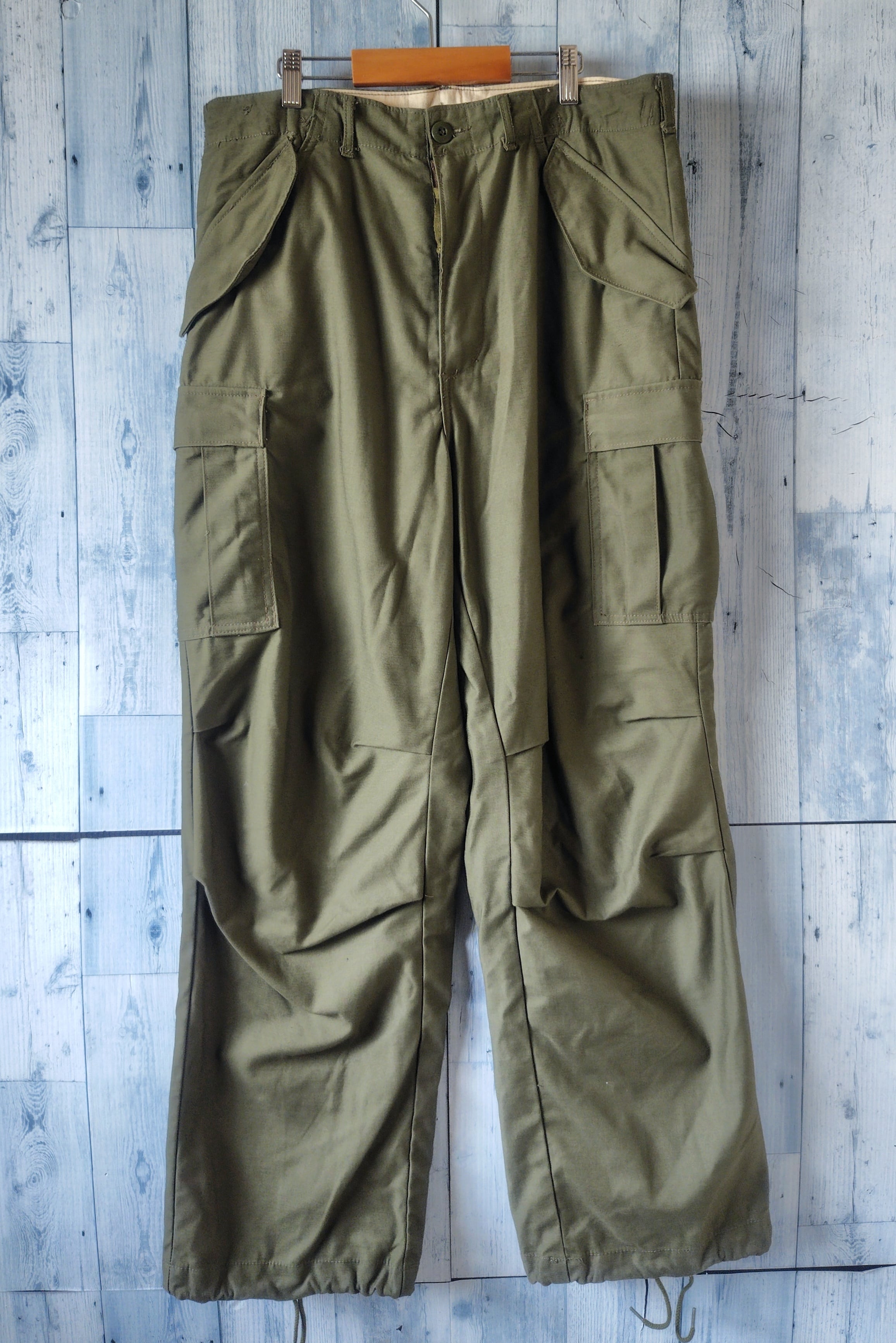 1960年代後半、M-51の後継として誕生したこのモデルは、ミリタリーパンツの完成形。武骨な太めのシルエット、膝の動きを妨げないアクションプリーツ、そしてM-65を象徴する**「大型カーゴポケット」**。