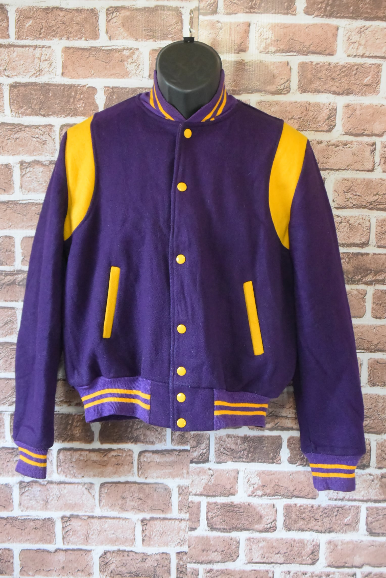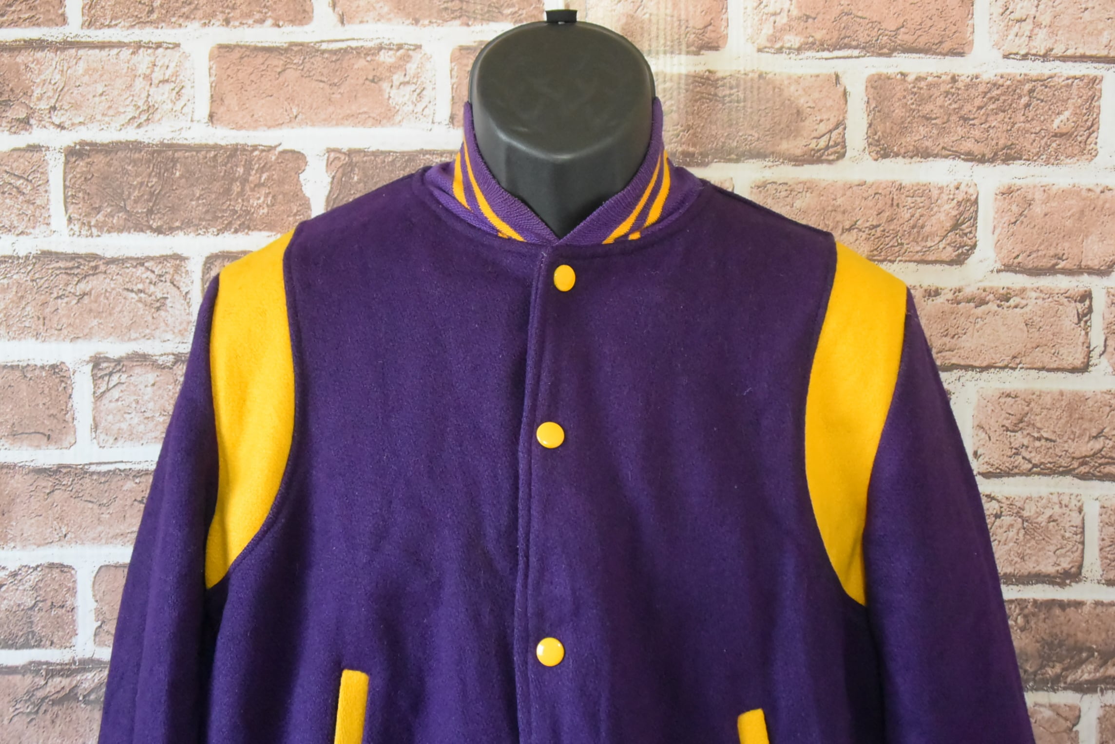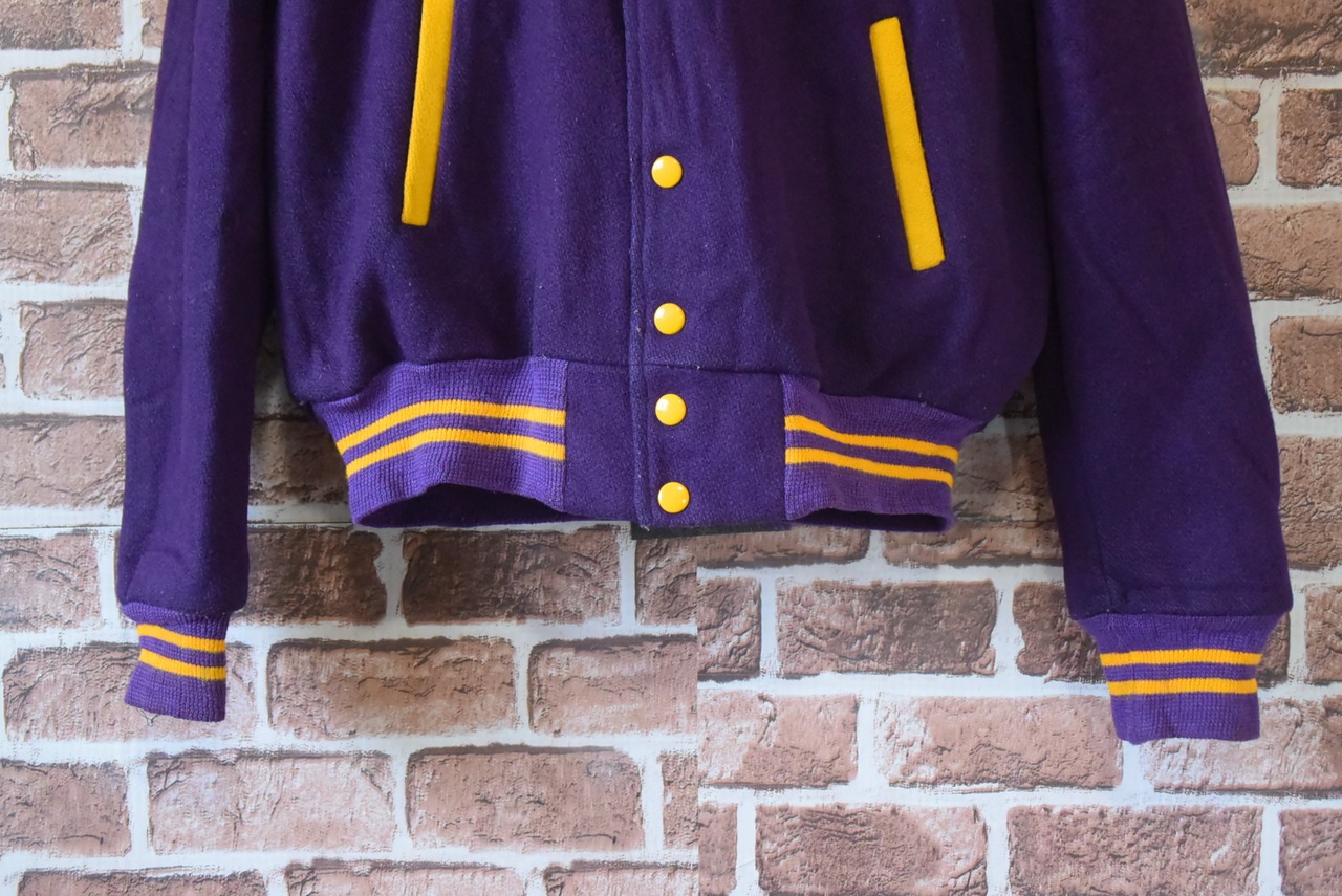 アメリカのピラミッドアウターウェアコーポレーション製のレターマンジャケット、いわゆるスタジャンです。ワッペンや刺繍など全くないシンプルなスタジャンですが、ヴィンテージ感あふれるアウターです。経年による使用感や、毛玉、汚れ等が若干見受けられますが、全体的なコンディションは良好でランクBです。