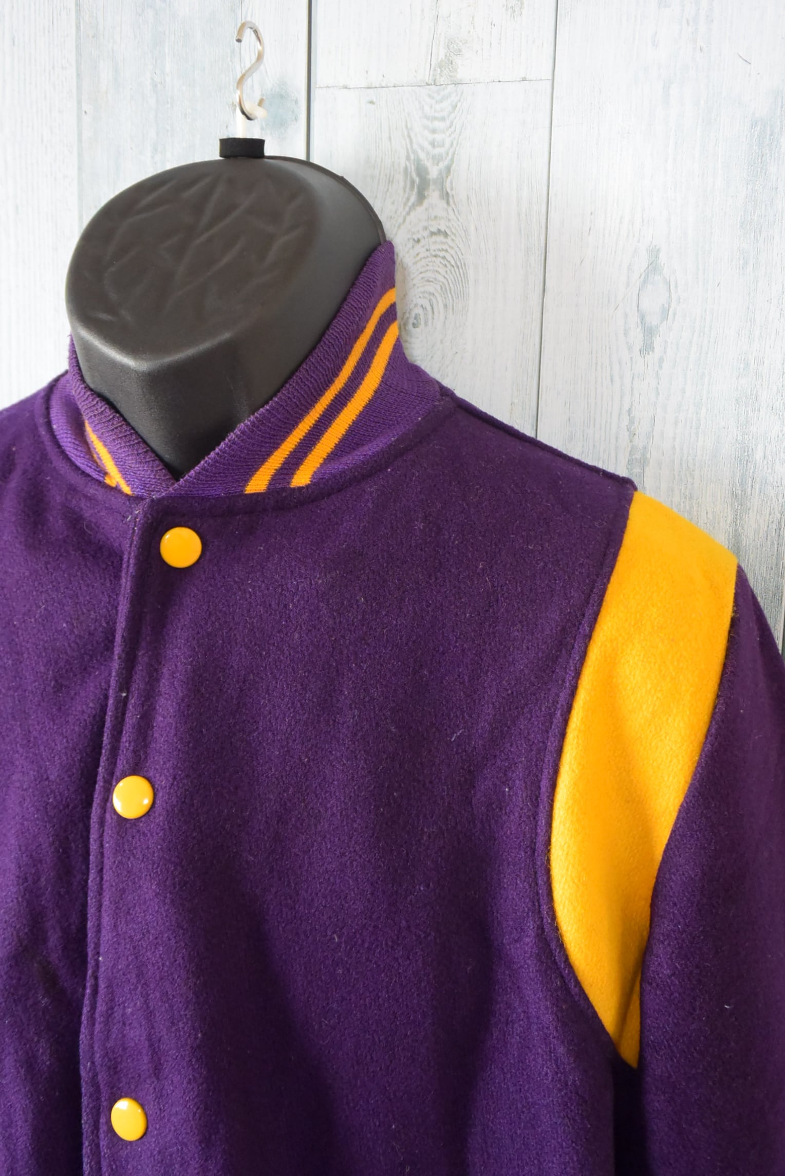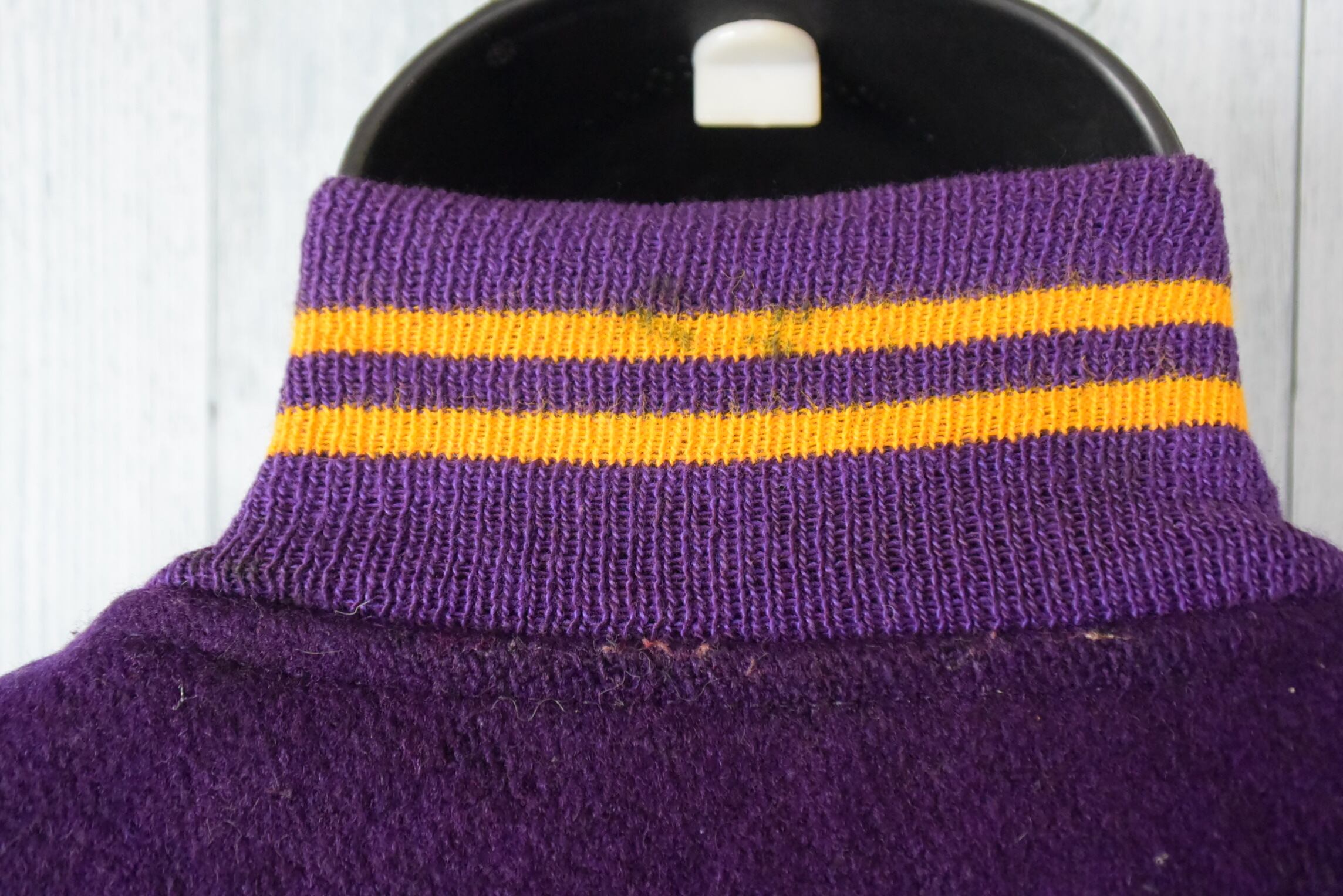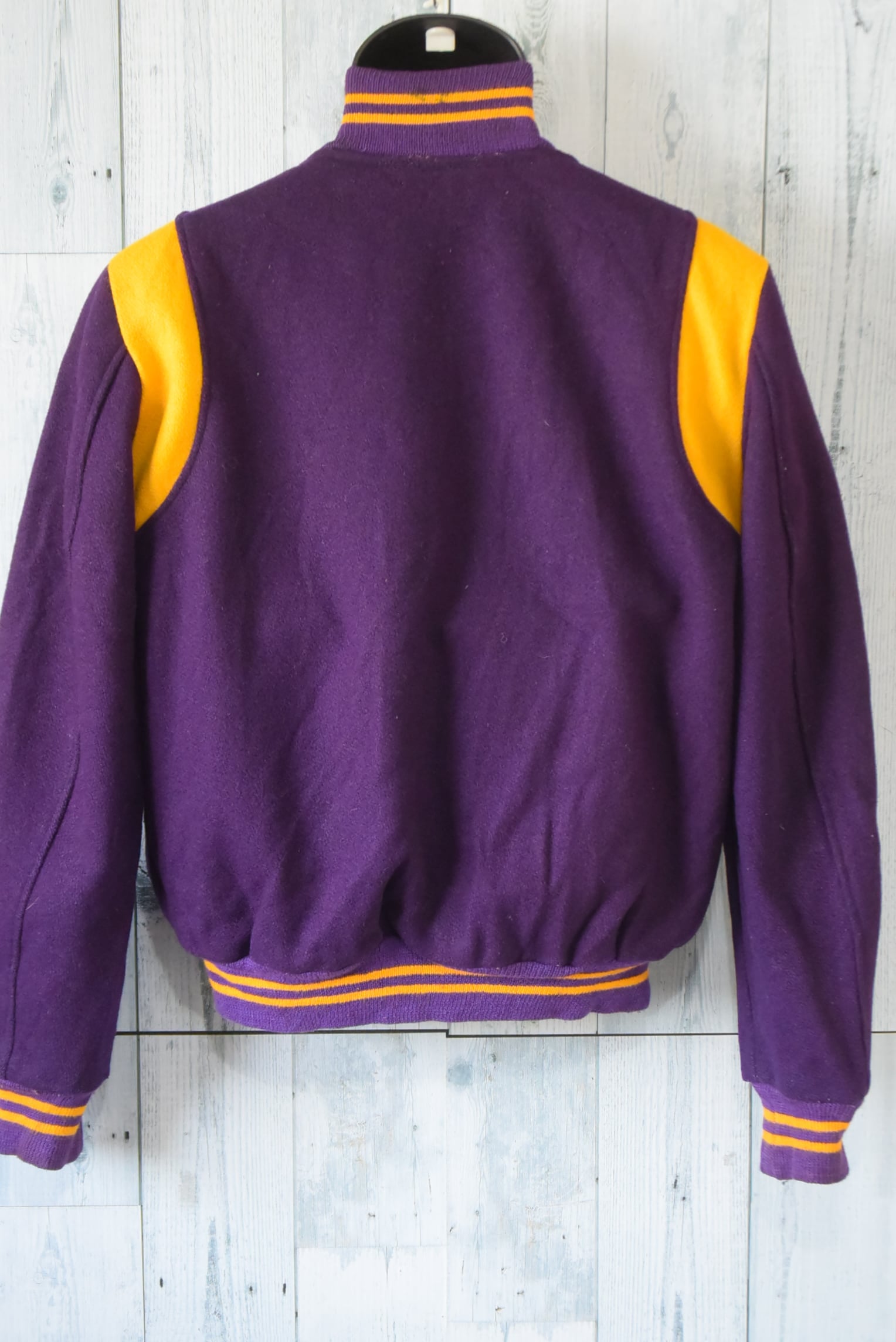 アメリカのピラミッドアウターウェアコーポレーション製のレターマンジャケット、いわゆるスタジャンです。ワッペンや刺繍など全くないシンプルなスタジャンですが、ヴィンテージ感あふれるアウターです。経年による使用感や、毛玉、汚れ等が若干見受けられますが、全体的なコンディションは良好でランクBです。