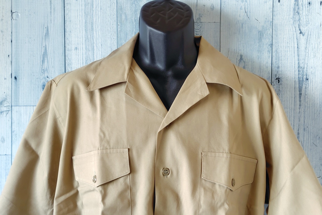 【アメリカ輸入古着】 ヴィンテージ US.NAVYミリタリーシャツ オープンカラー 開襟 (半袖) XL RankB