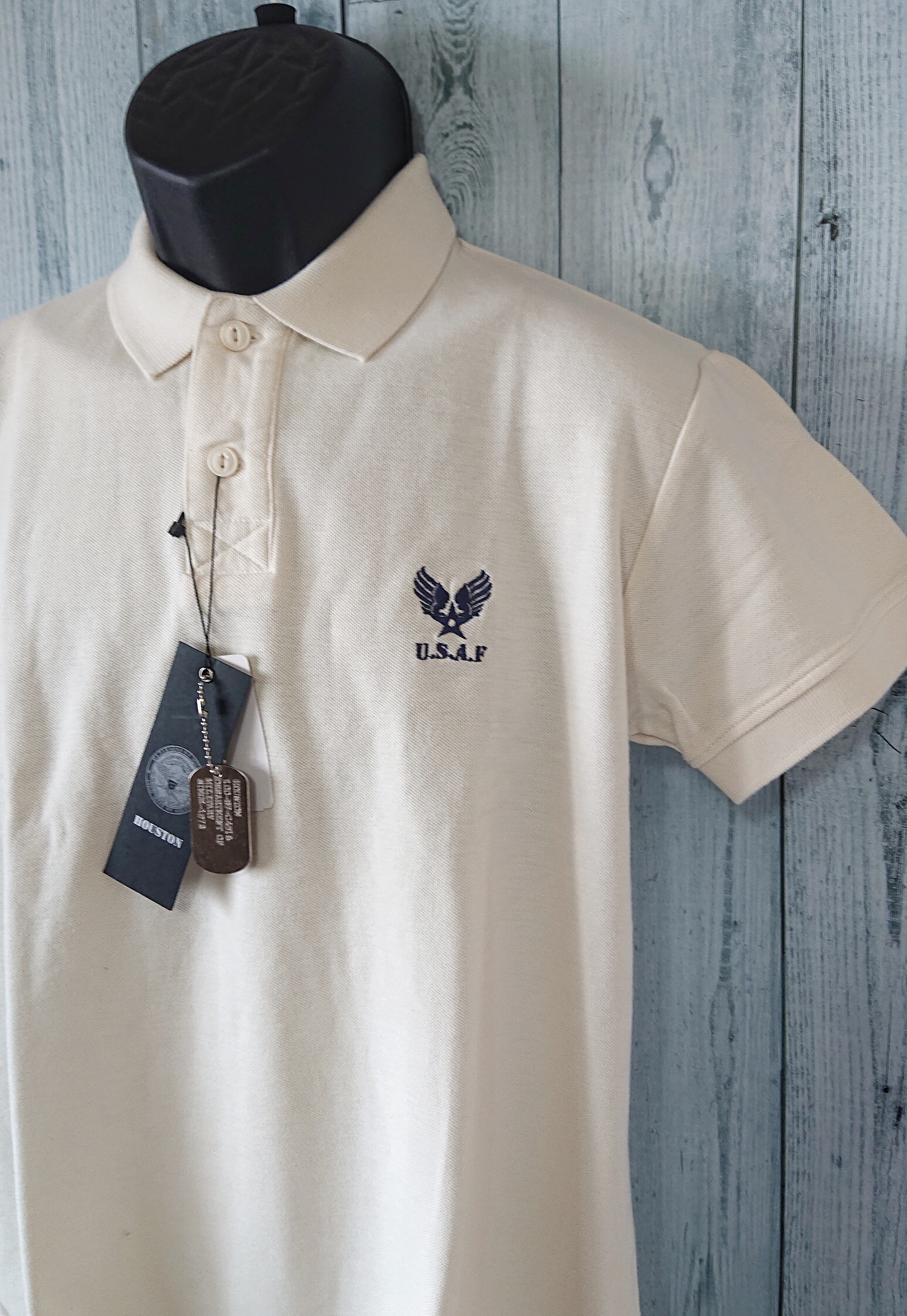 ベーシックなポロシャツにワンポイント刺繍の入ったミリタリーポロシャツはアメカジファッションにぴったりです。さらっとした鹿の子素材で肌触りがよく、これからの暑い季節に最適!胸元に入った刺繍もほど良いアクセントになって、ドッグタグも付属しています。毎日ガンガン着こんでいきたいアイテムです!!